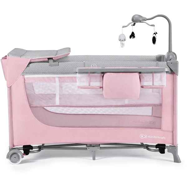 Kinderkraft Cuna de viaje LEODY rosa con accesorios